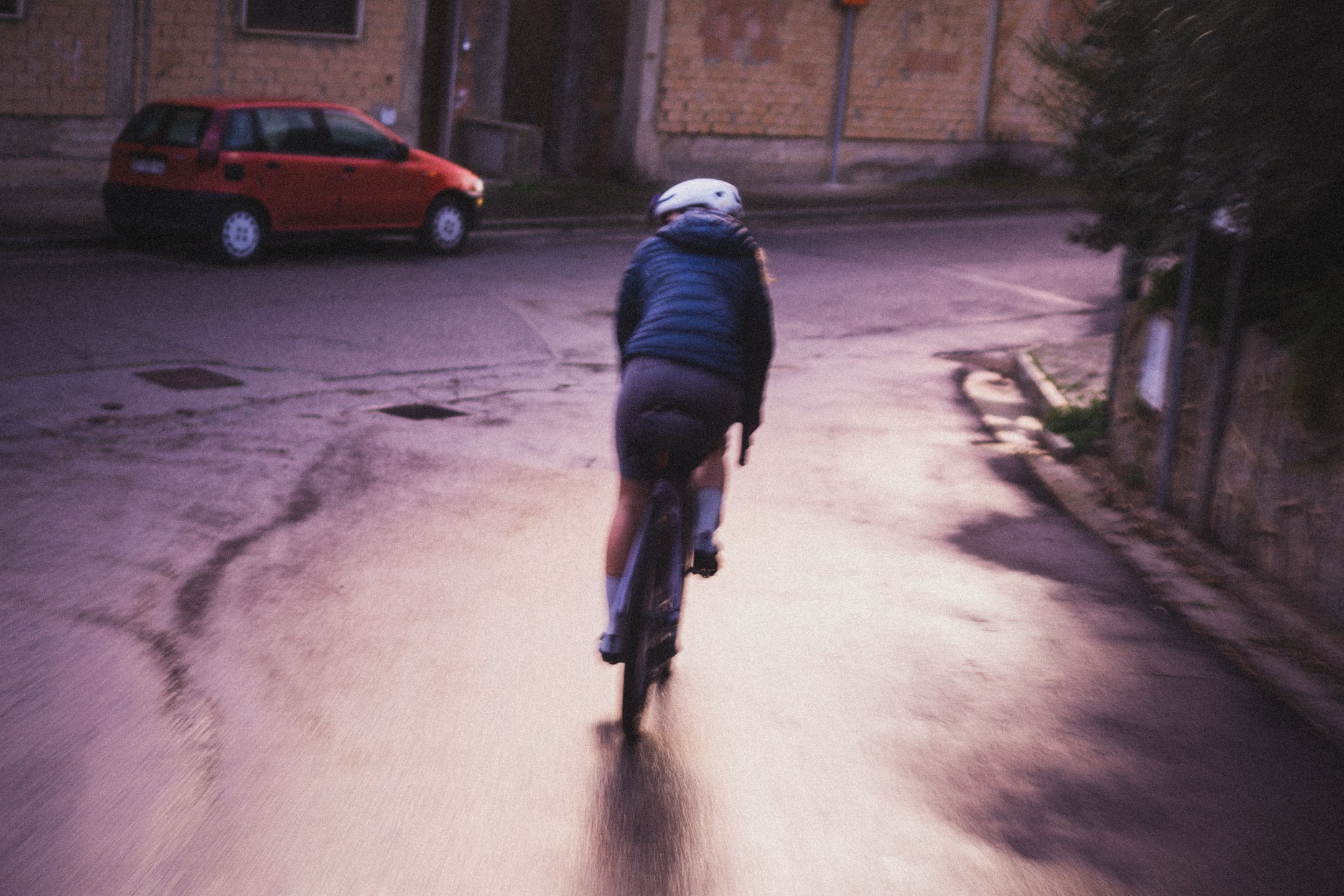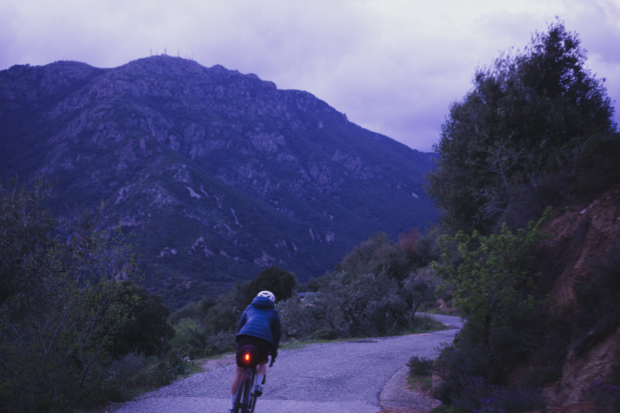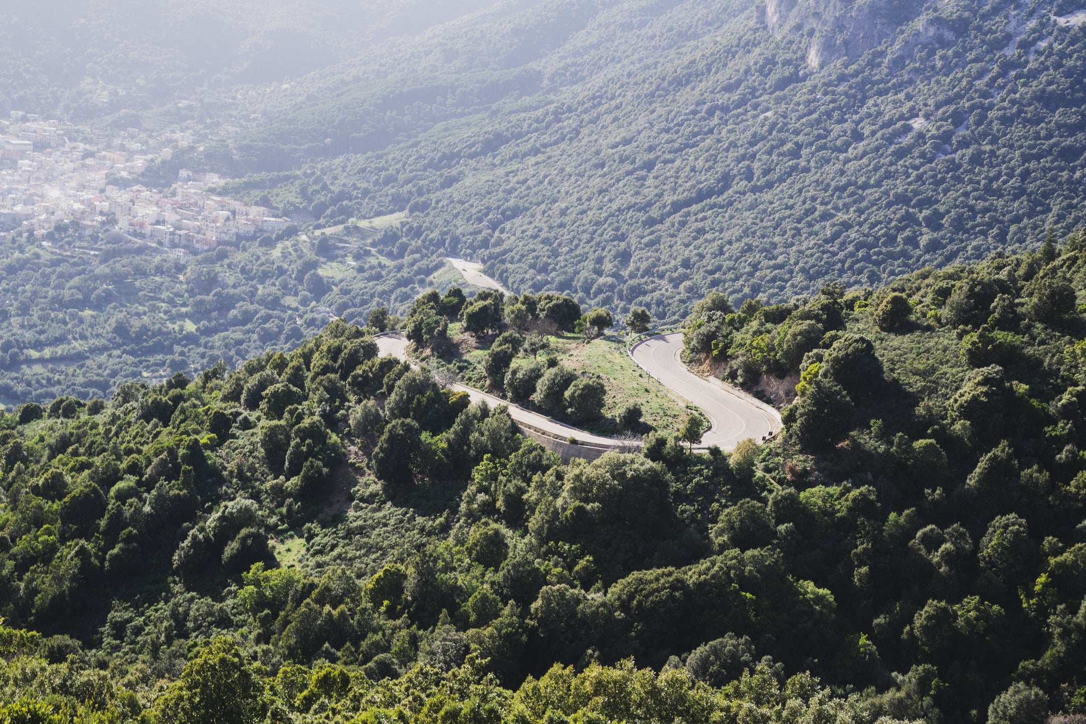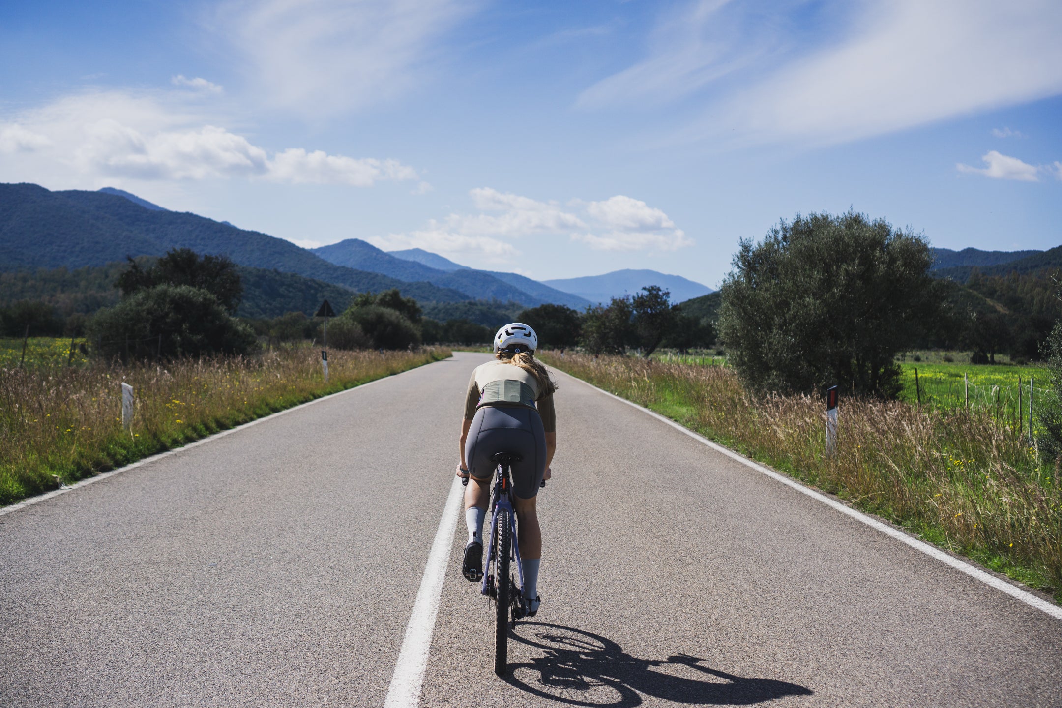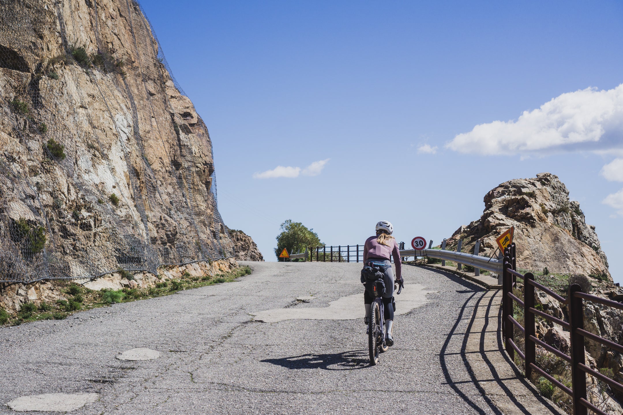 Trzeciego dnia budzimy się na prawie 1000 m n.p.m., przez co temperatura nie zachęca nas do wyjścia z pokoju. Po kilku kilometrach wjeżdżamy na jeszcze wyższy punkt trasy, skąd widzimy horyzont aż po same morze. Następnie zjeżdżamy zupełnie pustym, wąskim asfaltem w pięknej scenerii przez około 10 km. Highlightem dzisiejszego dnia jest przejazd starą, opuszczoną drogą, która trawersuje góry aż do samej Talany. Widzimy kilka znaków o zagrażających powodziach i osuwiskach, więc prawdopodobnie to powód zamknięcia drogi dla ruchu samochodowego, i to już dobre kilka lat temu, ponieważ asfaltu zostało na niej niewiele. Spotykamy jedynie stado kóz i grupę Francuzów, którzy jadą podobną trasę, ale w przeciwnym do nas kierunku. Droga ma prawie 20 km i kończy się w malutkiej miejscowości Talana, gdzie znajdujemy otwarty bar bez zbaczania z trasy. Od tego momentu trasy krajobraz coraz szybciej się zmienia, a im bliżej wybrzeża jesteśmy, tym robi się cieplej. Przejeżdżamy jeszcze przez Ursulei; w razie potrzeby również można znaleźć tam bar. Zmęczenie po 3 dniach jazdy w górach daje nam się już we znaki i przejeżdżamy skręt na gravelową drogę, która miała zaprowadzić nas do Cala Gonone. Nie mamy już chęci wracać, więc jedziemy nad samo morze asfaltem, ale trasę można poprowadzić z dodatkową gravelową końcówką. Nie jest ona przez nas sprawdzona, a teren wygląda na trochę górzysty, dlatego dla mniej zdeterminowanych pozostaje również asfaltowy wariant, który jest równie piękny, zwłaszcza o zachodzie słońca.
