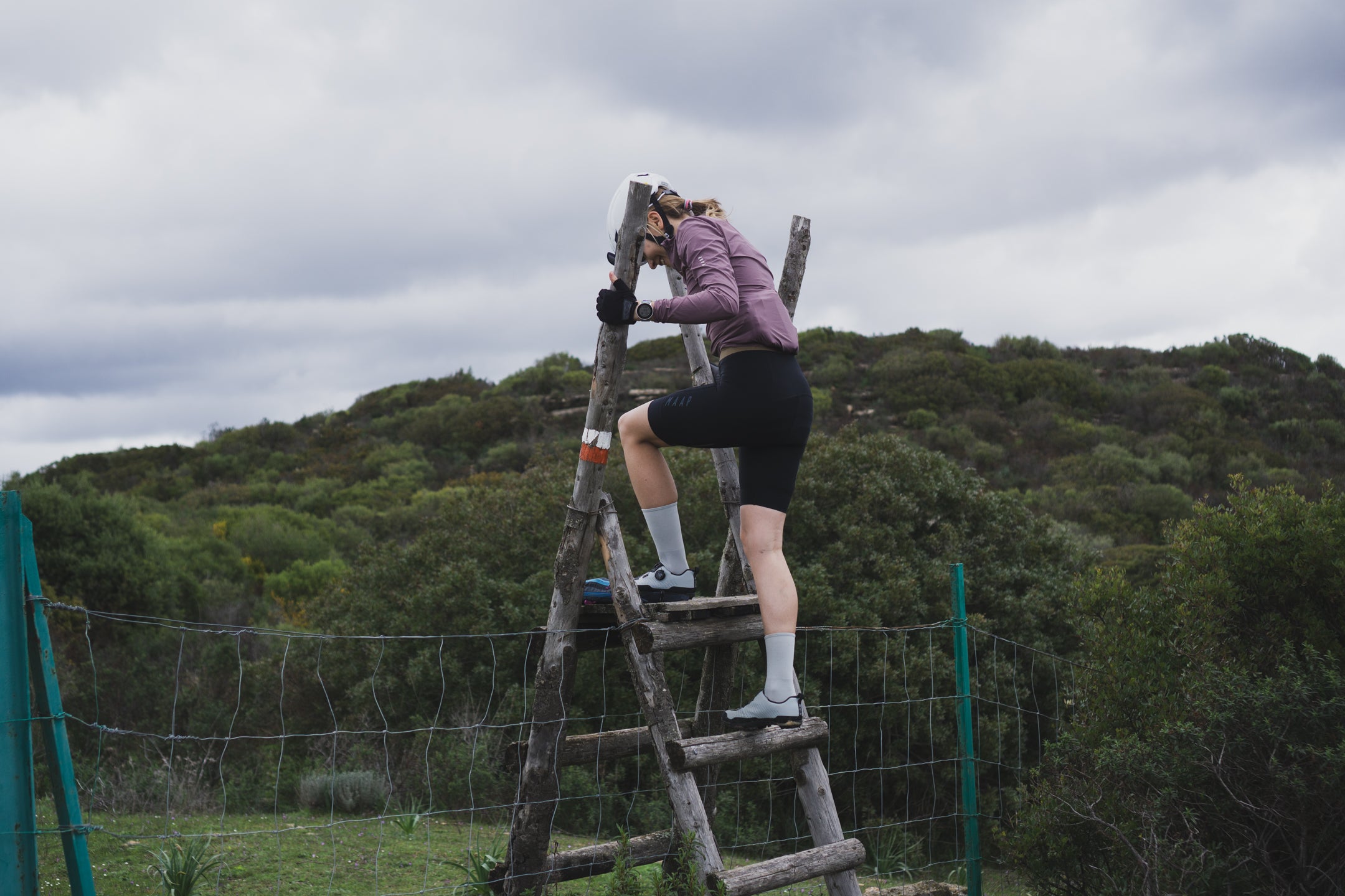 Dzień drugi zaczynamy 8-kilometrowym asfaltowym zjazdem z pięknymi widokami. Kurtki puchowe to była najlepsza rzecz, jaką zabraliśmy na ten bikepacking, jak możecie zauważyć na zdjęciach, temperatury w marcu w górach Sardynii nie są zbyt wysokie... ale jest to zdecydowanie lepsza opcja niż letnie temperatury powyżej 30 stopni i tłumy turystów. Przez następne 8 km czekał nas za to gravelowy podjazd w słońcu, który pozwolił nam wystarczająco się ogrzać. Wyjeżdżamy na piękną przełęcz, na której nie spotykamy nikogo oprócz wielu stad kóz i krów. To właśnie poczucie pustki, cisza i spokój zrobiło na nas największe wrażenie w tej górskiej części trasy. Nie wiemy, jak wygląda to w sezonie turystycznym, ale poza sezonem wyspa jest w większości niesamowicie spokojna. Dzień drugi to około 20 km gravela, z czego większość to podjazdy, dlatego pokonanie ich zajmuje nam trochę czasu. Do pokonania mamy między innymi jedną drabinę nad ogrodzeniem obszaru wojskowego, na który można wjechać rowerem. Pierwsze miasto, do którego dojeżdżamy, to Perdasdefogu, gdzie znajduje się kilka barów, w jednym z nich zatrzymujemy się, by coś zjeść i poszukać hotelu na dzisiejszą noc. Oprócz pierwszego noclegu w Armungii wszystkie noclegi rezerwowaliśmy tego samego dnia (dzwoniąc) lub dzień wcześniej (rezerwując przez booking) i działało. Wtedy jeszcze nie wiedzieliśmy, co nas czeka, aby do tego hotelu dojechać – 17 km podjazd (w tym ścianka! 31% na samym końcu), a uświadomiliśmy sobie to, zjeżdżając serpentynami z pięknymi widokami przez miejscowość Jerzu. W tym momencie była już prawie 18, dlatego przydały się nasze lampki, bo już o 19 zrobiło się ciemno. Całe szczęście, że Włosi mają w zwyczaju dosyć późne jedzenie kolacji, bo dzięki temu nie poszliśmy spać głodni – w hotelowej pizzerii zjedliśmy przepyszną pizzę.