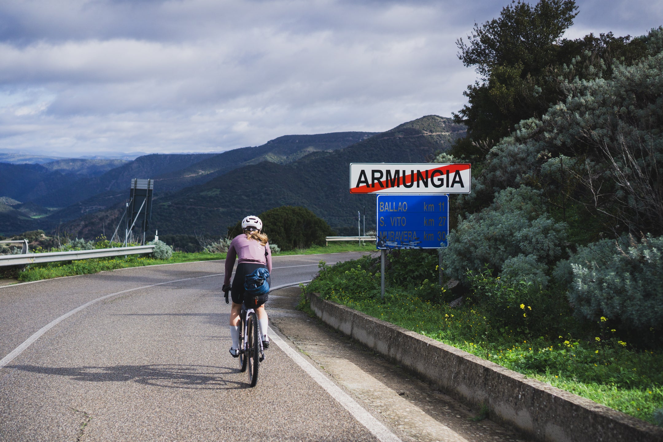 Zanim definitywnie ruszymy, podjeżdżamy do Decathlonu, żeby kupić butlę z gazem, na wypadek spania w namiocie (w którym, jak się później okaże, nie będziemy spać). Bez problemu można kupić mniejsze lub większe butle za kilka euro. Wyjeżdżamy z miasta na piękną szutrową drogę, która prowadzi nas z poziomu morza na 660 m n.p.m. Zdobywając wysokość, droga robi się jednak coraz bardziej górska. Zniechęceni tym faktem, ale też deszczem i coraz późniejszą godziną, mimo chęci podążania za oryginalnym trackiem Transardynii, modyfikujemy go, aby zdążyć przed zmrokiem do miejsca naszego noclegu. Zjeżdżamy do miejscowości Dolianova, skąd jedziemy już asfaltem bezpośrednio do Armungii. Droga prowadzi przez zupełnie opustoszały interior wyspy i mimo że jedziemy asfaltem, nie mija nas praktycznie żaden samochód. Zatrzymujemy się w bardzo małym miasteczku, w typowo włoskim domu „Su Carreri”. Znalezienie noclegów w Armungii wcale nie było proste, ponieważ górskie tereny Sardynii są słabo zaludnione, dodatkowo poza sezonem praktycznie nieodwiedzane przez turystów. Z Donatellą, właścicielką B&B w Armungii, udało się skontaktować przez WhatsApp, za nocleg ze śniadaniem (włoskim) dla dwóch osób zapłaciliśmy 65 euro. Rowery trzymaliśmy raczej bez obaw na tarasie przed domem. W miasteczku jest tylko jeden bar „Su Stentu” (pizza tylko mrożona), dlatego byliśmy niesamowicie szczęśliwi, że był otwarty jeszcze wieczorem i mogliśmy uzupełnić trochę kalorii, bo następnego dnia czekało nas prawie 2500 m przewyższenia.