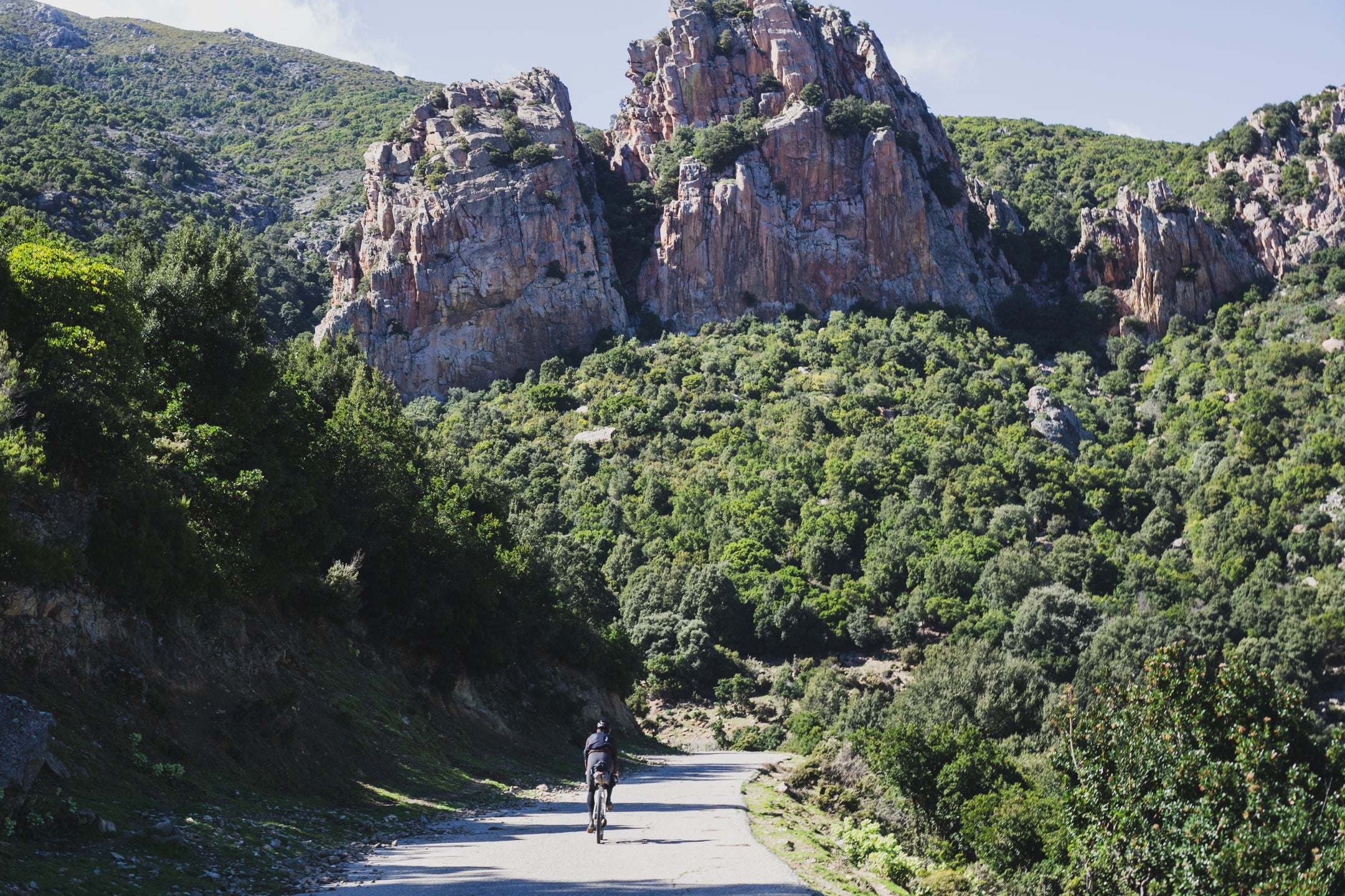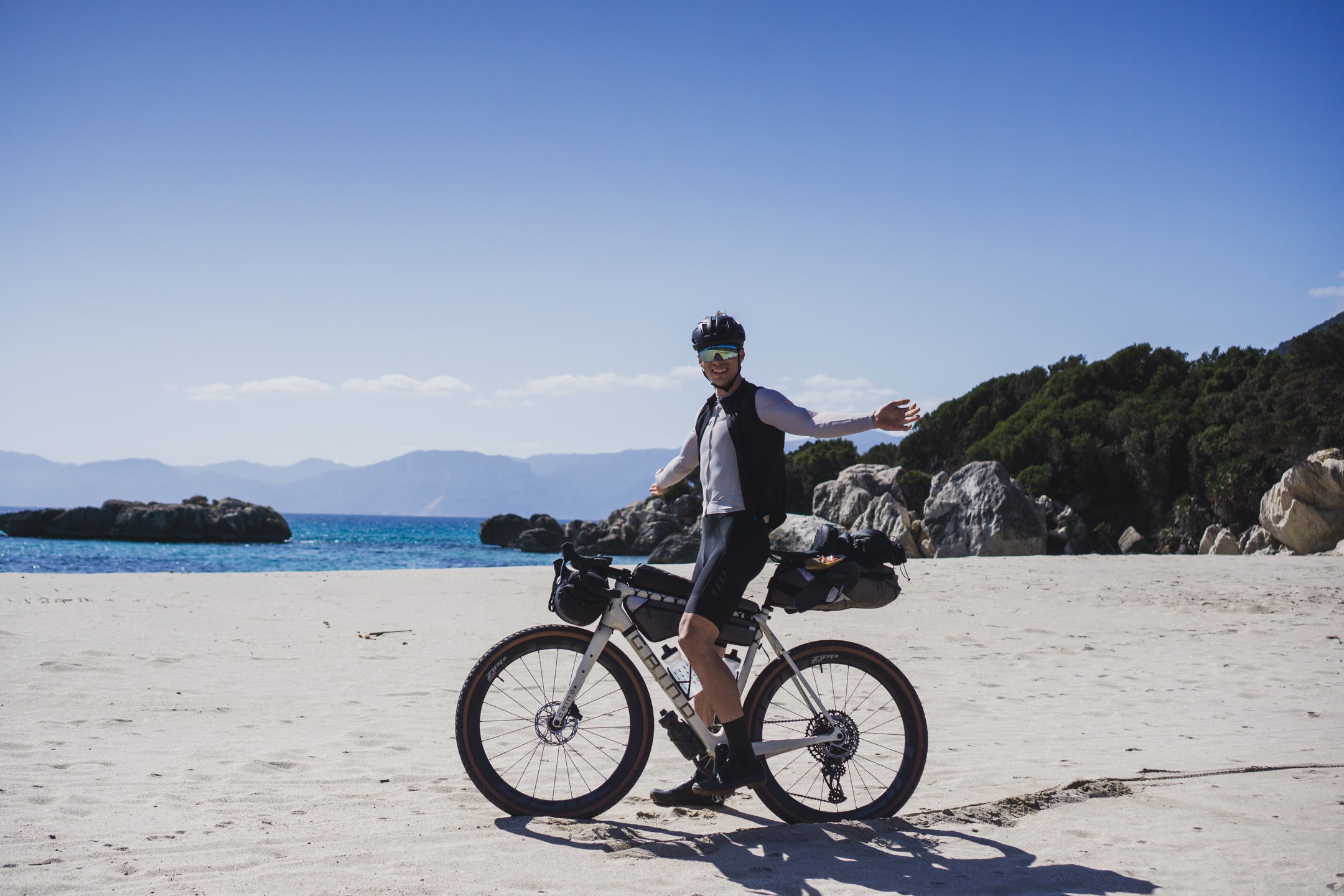 O koncepcji trasy Transardynia dowiedzieliśmy się z relacji Tristana Bogaarda i jego przyjaciół, którzy pokonali ją w 2021 roku i dokładnie opisali na stronie bikepacking.com (pierwszym twórcą trasy jest Giorgio Pupillo). Oryginalna trasa Transardynia wiedzie wyłącznie przez góry, często w bardzo skalistym terenie, w którym trudno poruszać się nawet na rowerze MTB. Szlak nie jest oficjalny ani bardzo popularny i nikt nie dba o jego utrzymanie. W wielu miejscach to hike-a-bike, dlatego postanowiliśmy stworzyć alternatywną, „szybszą” wersję trawersu przez wyspę, który będzie wykonalny w trakcie tygodniowego urlopu, przejezdny w całości na gravelowych rowerach, urozmaicony pod względem widokowym, nie będzie wymagał zabierania namiotu i pchania roweru. Taka właśnie jest ta wersja Transardinii: są góry, morze, małe włoskie miasteczka, piękne widoki i pyszne włoskie jedzenie.