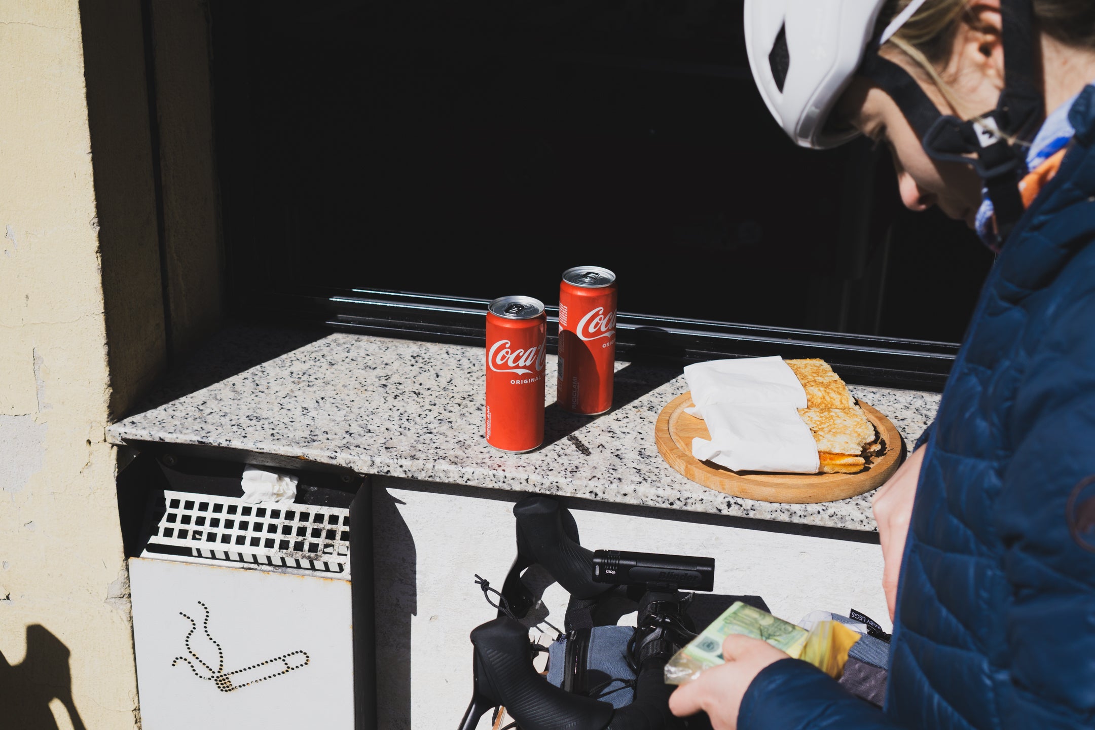 Na Sardynię przylatujemy 9 marca 2024 równo o północy, lotnisko w Cagliari jest już trochę opustoszałe, a my z dwoma wielkimi pudłami w środku nocy musimy jakoś dostać się do centrum, gdzie mamy zarezerwowany hotel. Teoretycznie moglibyśmy pojechać autobusem o 1:00, ale nie chcemy jeszcze bardziej skracać i tak krótkiego czasu na sen, dlatego jedziemy większą taksówką za ok. 25 euro. Śpimy w Baco B&B, z właścicielem, Cosimo, pisałam na AirBnb, żeby zapytać o możliwość pozostawienia w jego hotelu pudeł, w których przywieźliśmy rowery. Zgodził się, dlatego pierwszy i ostatni nocleg na Sardynii spędzamy w tym samym hotelu, równocześnie rozwiązując odwieczny problem podróżowania z rowerem, czyli gdzie zostawić pudła/walizki w trakcie bikepackingu.