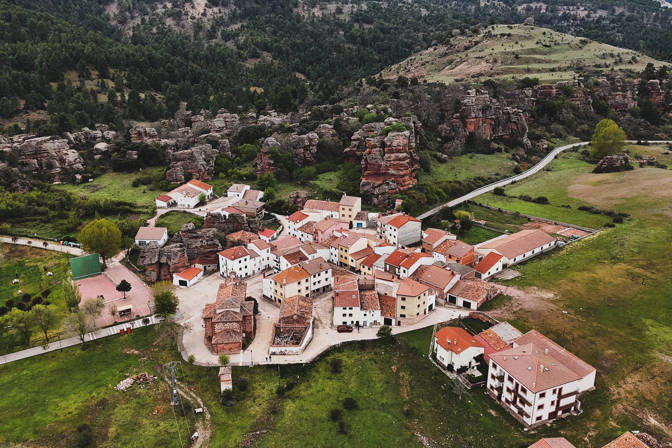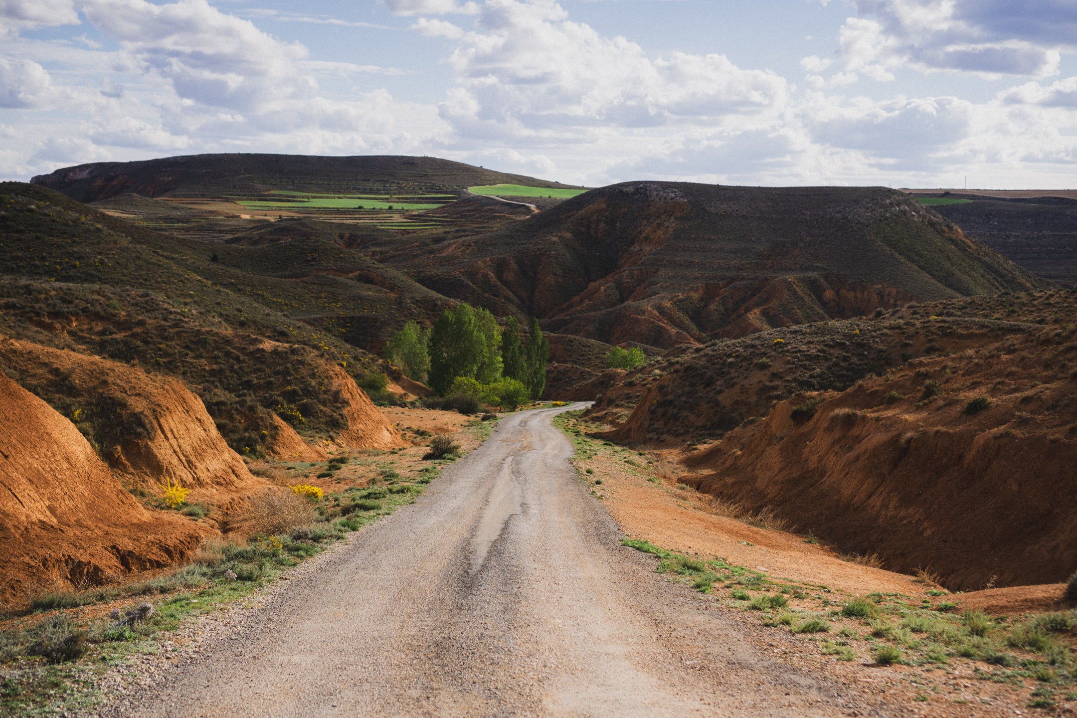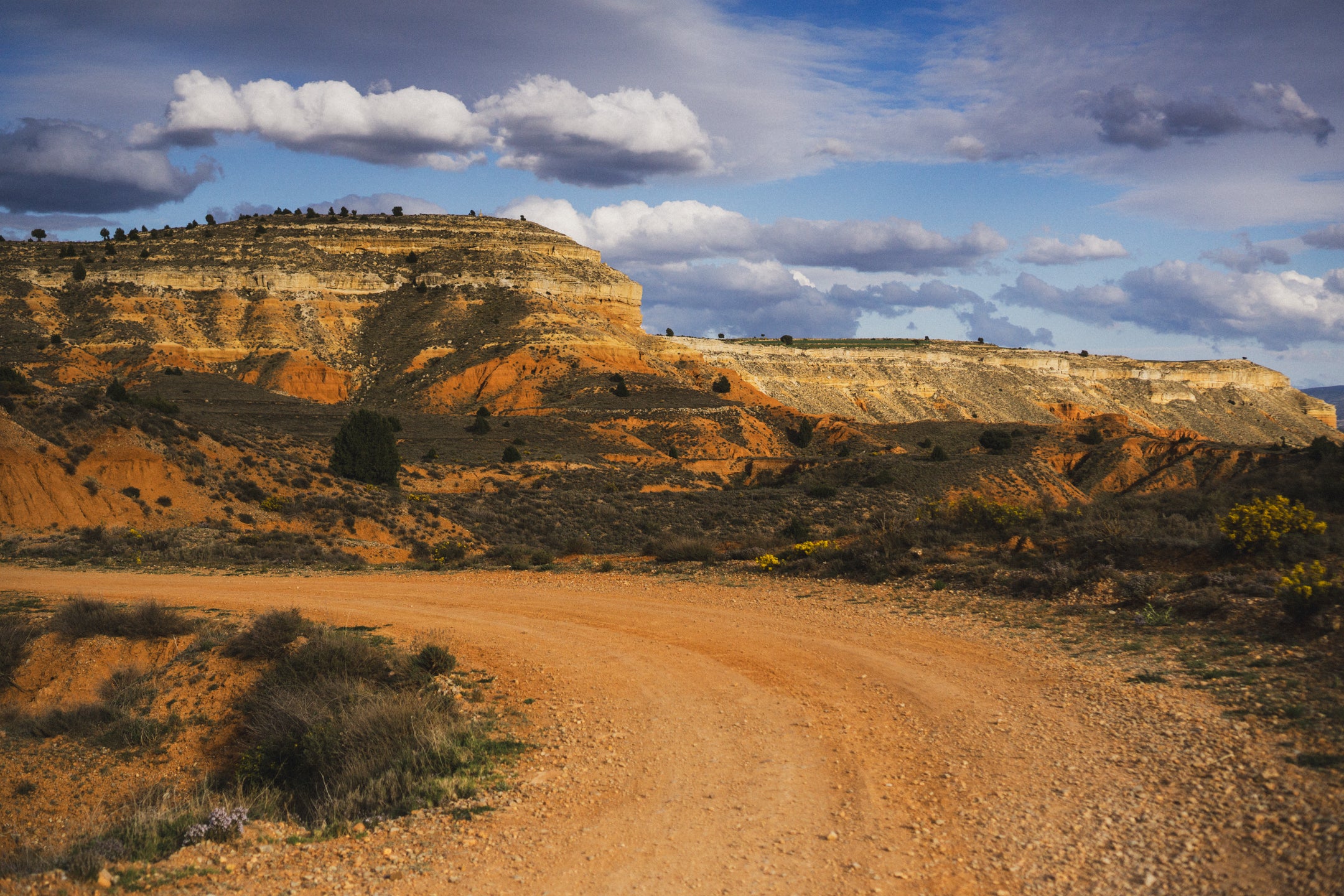 Wyjeżdżając z Teruel, po zaledwie kilku kilometrach wjeżdżamy do highlightu Montañas Vacías, czyli pomiędzy czerwone, pofalowane wzgórza. Ze zdjęciami z tego miejsca wszystkim kojarzą się Montañas Vacías. Jazda kanionami po idealnej szutrowej drodze, widząc w oddali znikające miasto, sprawia, że trasa robi na nas świetne pierwsze wrażenie. Tego dnia na trasie mijamy Albarracín, miasteczko znane wśród wspinaczy, gdzie dzięki nim i turystom jest trochę życia. Tam udaje nam się zjeść obiad w Restaurante Prado po tym, jak złapał nas mega ulewny deszcz, który do reszty nas przemoczył. Na szczęście, jak tylko ponownie ruszyliśmy, wyszło słońce! Tego dnia śpimy w miejscowości Orihuela de Tremedal, miasteczku położonym na wzgórzu. Jest praktycznie opustoszałe – nie ma tu otwartych barów ani sklepów, a nasz hotel z daleka wygląda jak zamknięty. Mamy rezerwację z Bookingu i faktycznie zostajemy przyjęci. Nawet mamy w pokoju działające grzejniki, co jest, jak na hiszpańskie warunki, luksusem! Dzięki temu suszymy wszystko, co dzisiaj zmoczył nam deszcz.