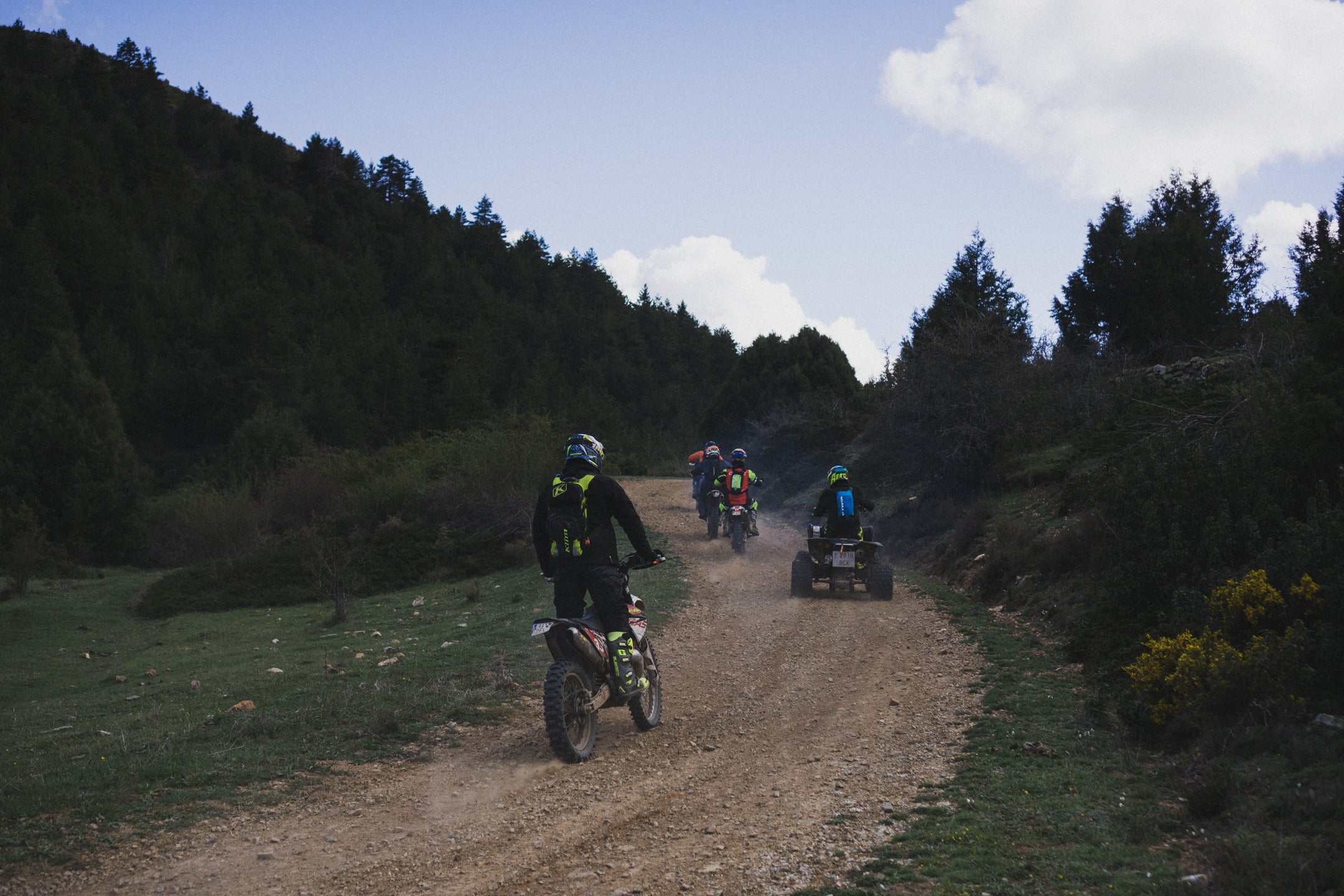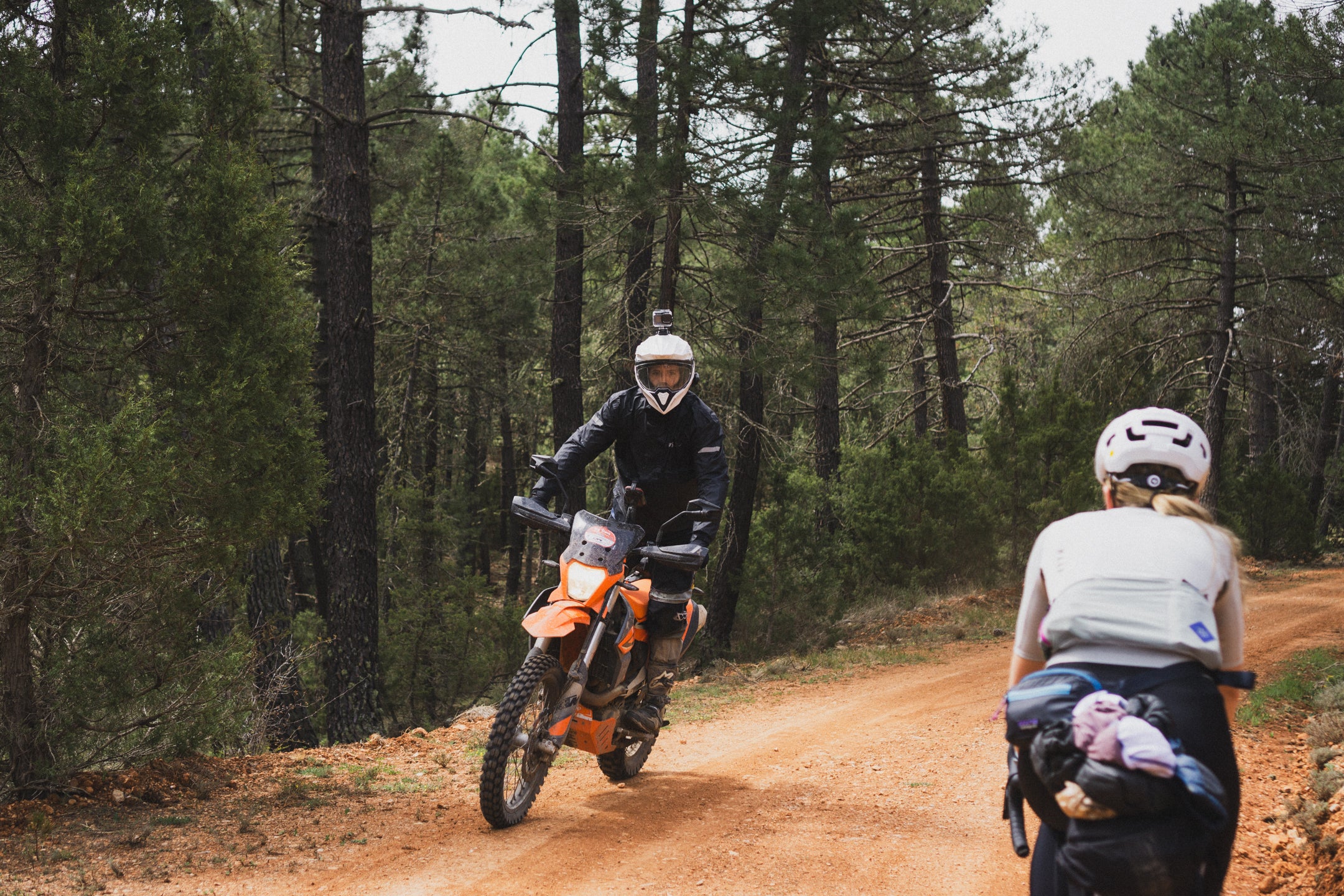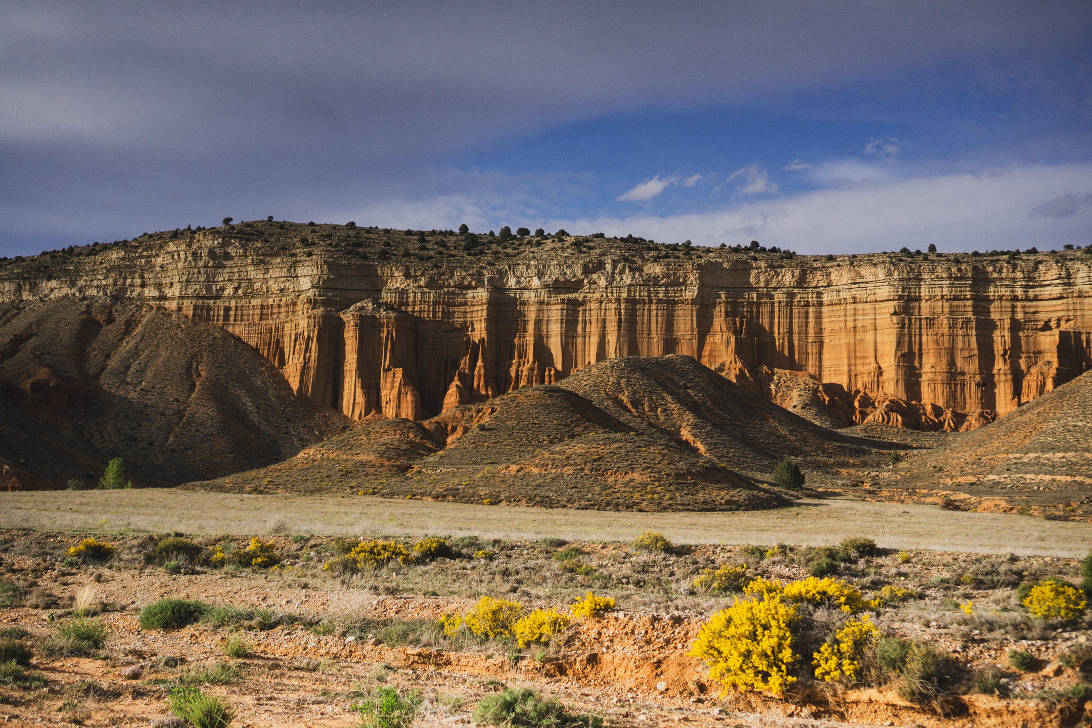Wyjeżdżając z Teruel, po zaledwie kilku kilometrach wjeżdżamy do highlightu Montañas Vacías, czyli pomiędzy czerwone, pofalowane wzgórza. Ze zdjęciami z tego miejsca wszystkim kojarzą się Montañas Vacías. Jazda kanionami po idealnej szutrowej drodze, widząc w oddali znikające miasto, sprawia, że trasa robi na nas świetne pierwsze wrażenie. Tego dnia na trasie mijamy Albarracín, miasteczko znane wśród wspinaczy, gdzie dzięki nim i turystom jest trochę życia. Tam udaje nam się zjeść obiad w Restaurante Prado po tym, jak złapał nas mega ulewny deszcz, który do reszty nas przemoczył. Na szczęście, jak tylko ponownie ruszyliśmy, wyszło słońce! Tego dnia śpimy w miejscowości Orihuela de Tremedal, miasteczku położonym na wzgórzu. Jest praktycznie opustoszałe – nie ma tu otwartych barów ani sklepów, a nasz hotel z daleka wygląda jak zamknięty. Mamy rezerwację z Bookingu i faktycznie zostajemy przyjęci. Nawet mamy w pokoju działające grzejniki, co jest, jak na hiszpańskie warunki, luksusem! Dzięki temu suszymy wszystko, co dzisiaj zmoczył nam deszcz.