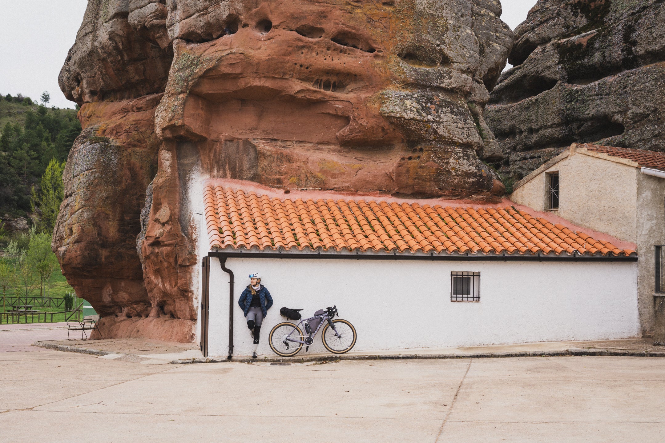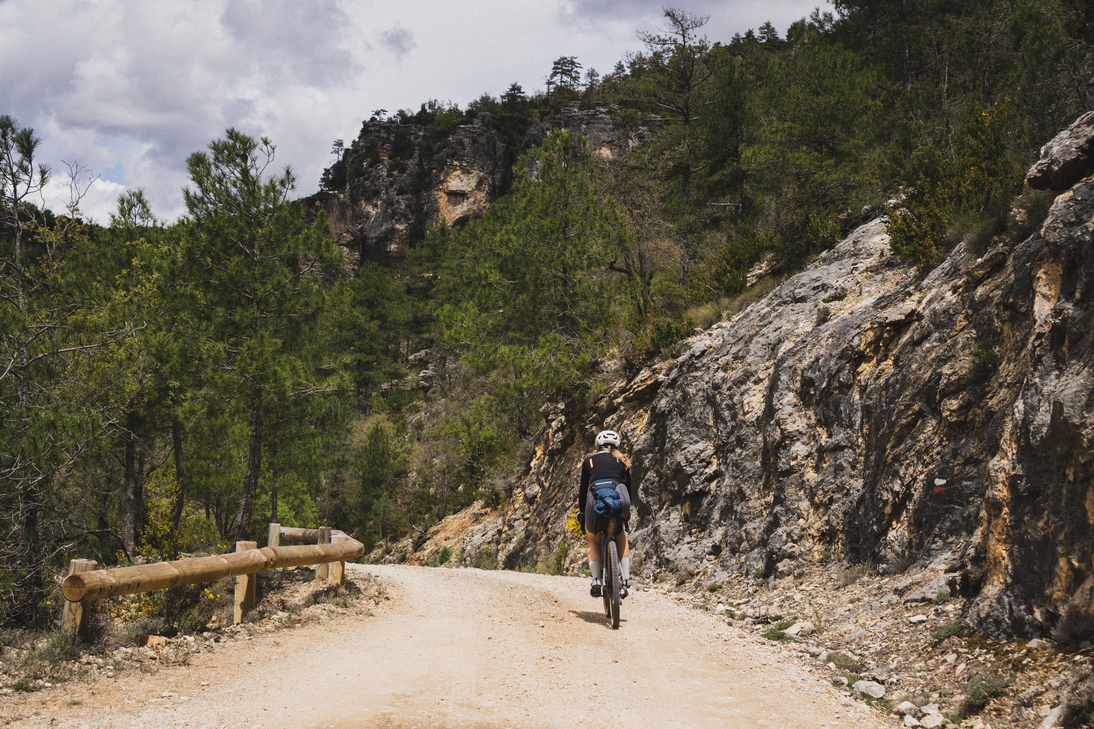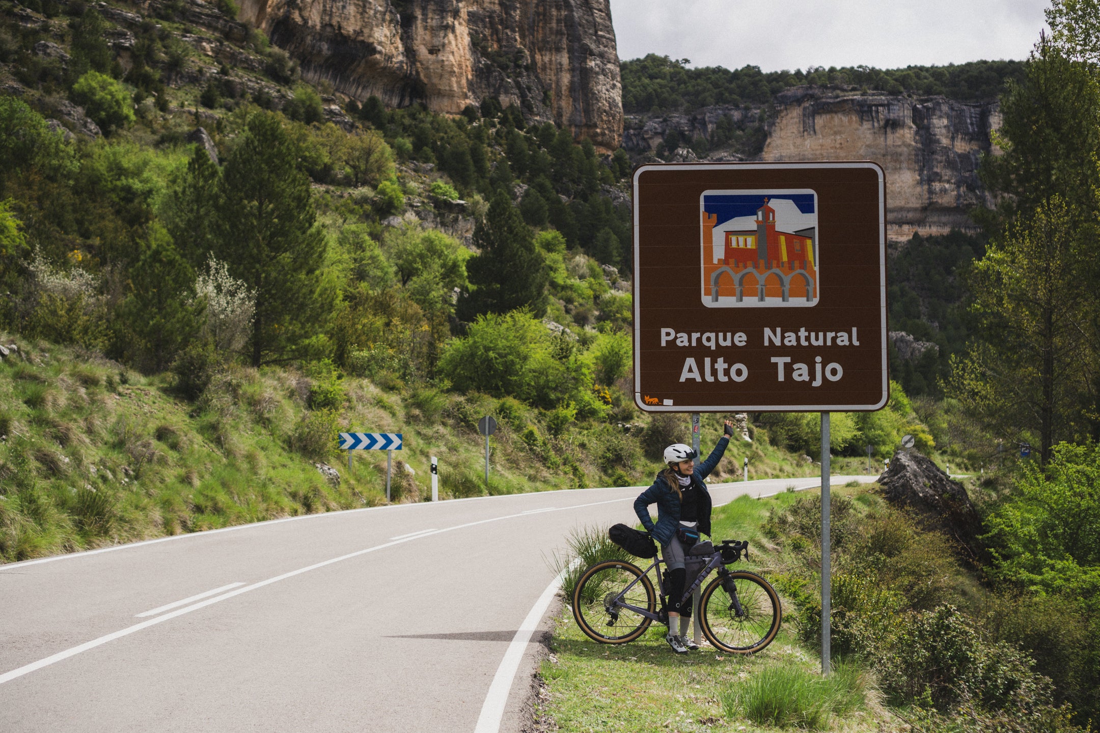 Celem kolejnego dnia jest miejscowość Tragacete. Tego dnia odpoczywamy trochę od gravela – pogoda nam nie sprzyja, pada deszcz, więc próbujemy jak najszybciej znaleźć miejsce na późne śniadanie. Dojeżdżamy do Valsalobre, gdzie starszy pan prowadzi mały bar. Oczywiście zamawiamy bocadillos, dwa cortado i Fantę limón – zestaw obowiązkowy. Przeczekujemy deszcz i na szczęście robi się słonecznie, więc w lepszych humorach ruszamy dalej. Po drodze jeszcze barraquito i cola w Betecie, a potem delikatnie zjeżdżamy z trasy nad Laguna Grande – całkiem ładne jeziorko. Później czekają nas jeszcze kilka podjazdów, piękne widoki i kłopoty z oponą, z której schodzi powietrze. Jakoś dotaczamy się do Tragacete, miasteczka trochę większego od poprzednich. Okazuje się, że akurat odbywa się tam zjazd profesjonalnych ekip kolarskich, które spadają nam z nieba – pożyczają nam strzykawkę do tubeless, której zapomnieliśmy. Dzięki temu udaje się uszczelnić przebitą oponę bez zakładania dętki. Nawet nie wiecie, jak bardzo nas to ucieszyło i jak abstrakcyjne to było – tam, pośrodku niczego.