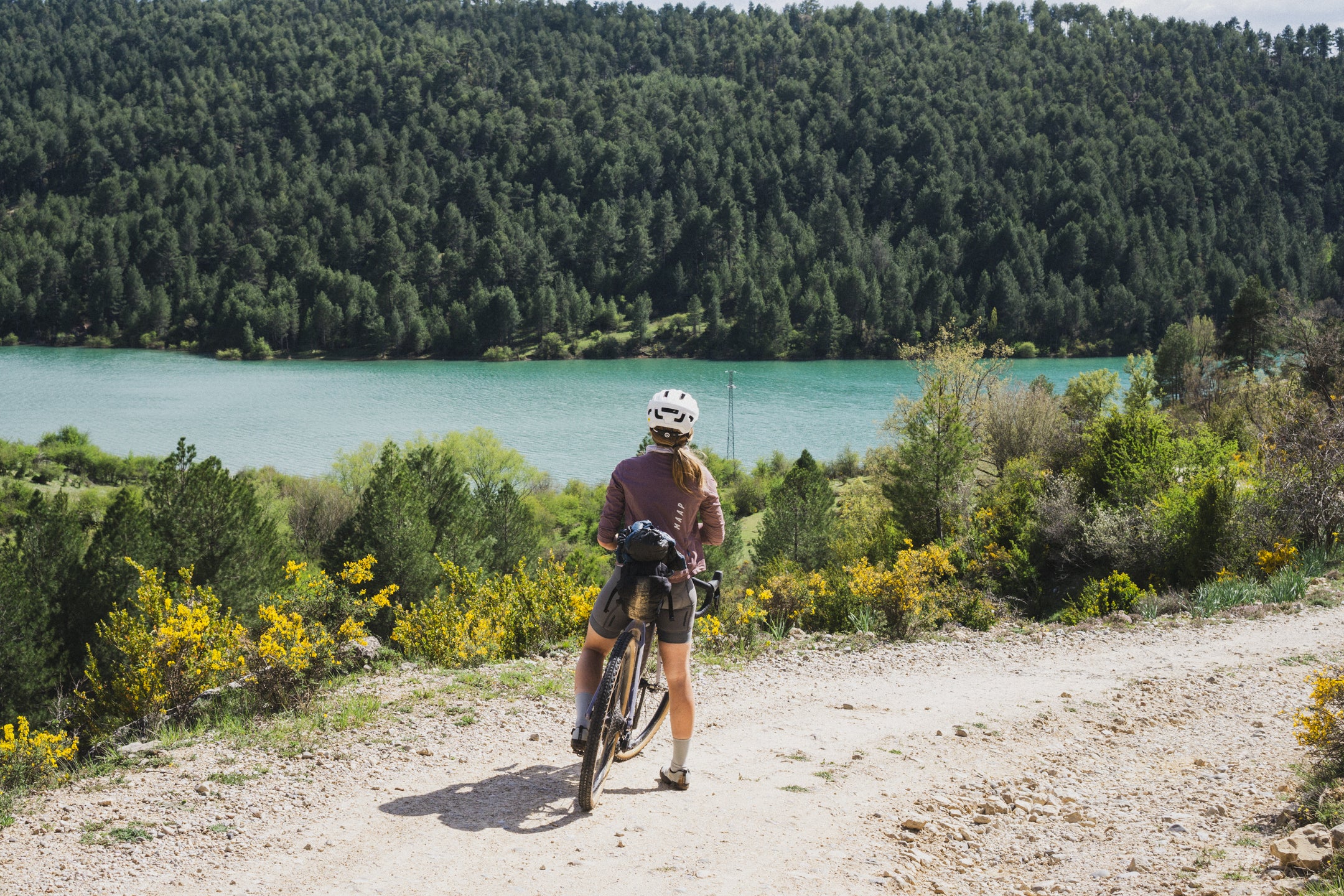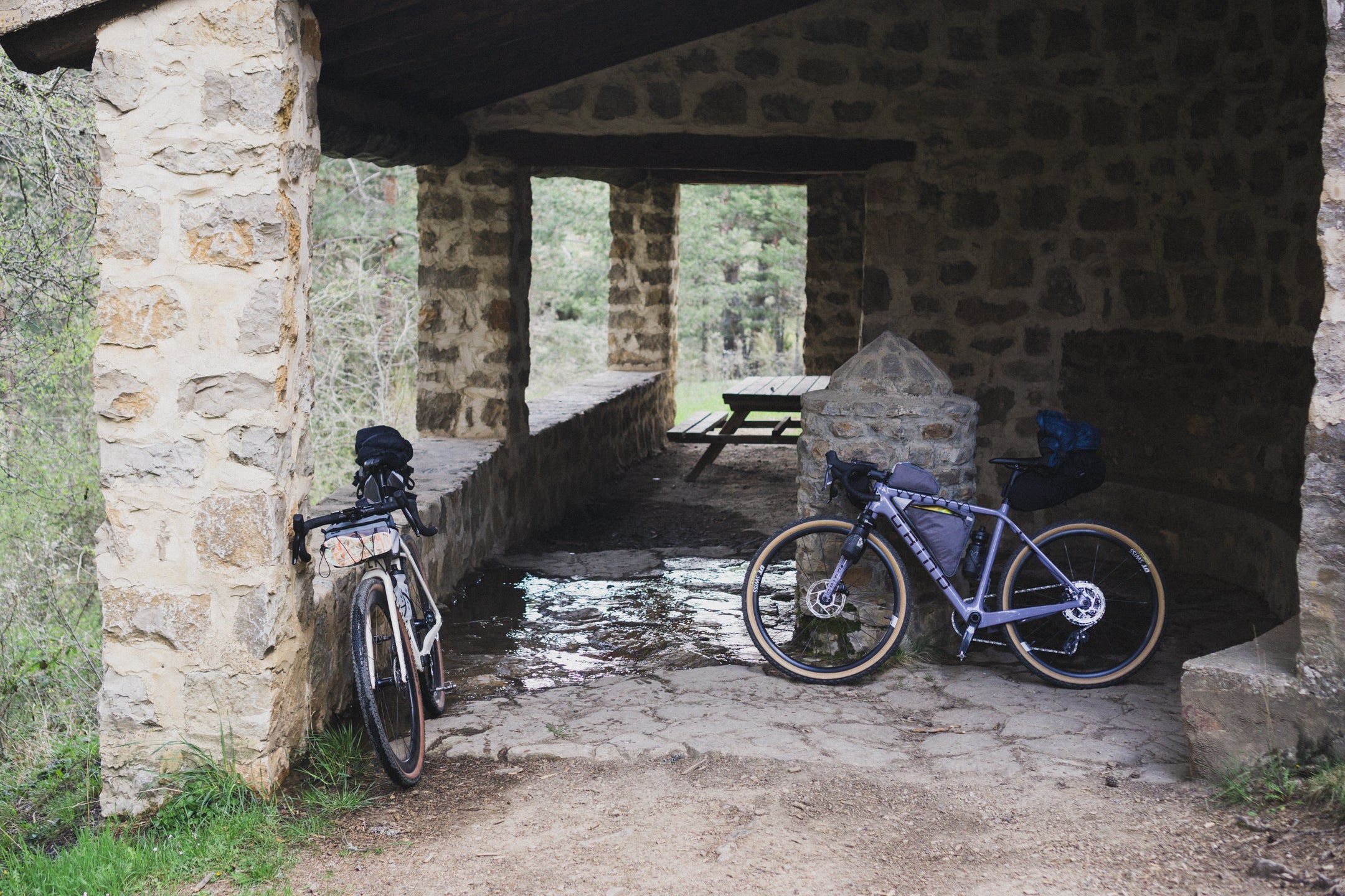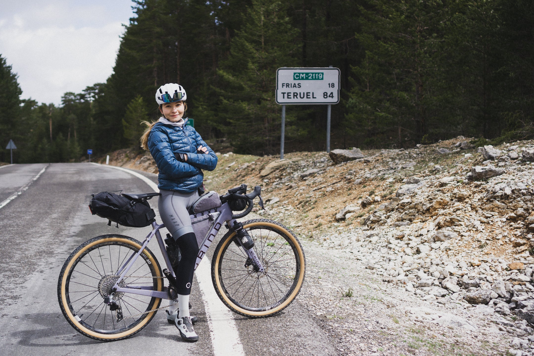 Celem kolejnego dnia jest miejscowość Tragacete. Tego dnia odpoczywamy trochę od gravela – pogoda nam nie sprzyja, pada deszcz, więc próbujemy jak najszybciej znaleźć miejsce na późne śniadanie. Dojeżdżamy do Valsalobre, gdzie starszy pan prowadzi mały bar. Oczywiście zamawiamy bocadillos, dwa cortado i Fantę limón – zestaw obowiązkowy. Przeczekujemy deszcz i na szczęście robi się słonecznie, więc w lepszych humorach ruszamy dalej. Po drodze jeszcze barraquito i cola w Betecie, a potem delikatnie zjeżdżamy z trasy nad Laguna Grande – całkiem ładne jeziorko. Później czekają nas jeszcze kilka podjazdów, piękne widoki i kłopoty z oponą, z której schodzi powietrze. Jakoś dotaczamy się do Tragacete, miasteczka trochę większego od poprzednich. Okazuje się, że akurat odbywa się tam zjazd profesjonalnych ekip kolarskich, które spadają nam z nieba – pożyczają nam strzykawkę do tubeless, której zapomnieliśmy. Dzięki temu udaje się uszczelnić przebitą oponę bez zakładania dętki. Nawet nie wiecie, jak bardzo nas to ucieszyło i jak abstrakcyjne to było – tam, pośrodku niczego.